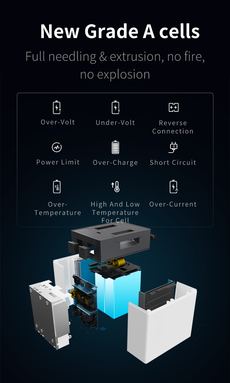 【Uses high-quality LiFePO4 battery】 The built-in battery uses a lithium iron phosphate battery (LiFePO4) that lasts 15 years with over 10000 charge/discharge cycles. It lasts seven times longer than conventional batteries and costs less. It also has a battery management system (BMS) and control unit (MCU) to manage battery cell voltage and temperature.